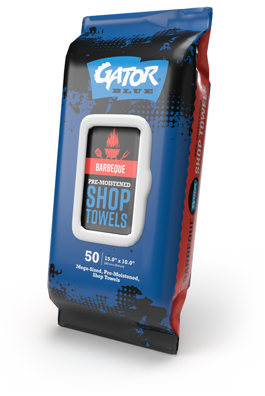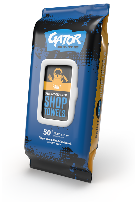 GATOR BLUE disposable shop towels are extra-large, extra-strong and extra-wet to cut through oil, grease, adhesives, dirt and grime in record time.