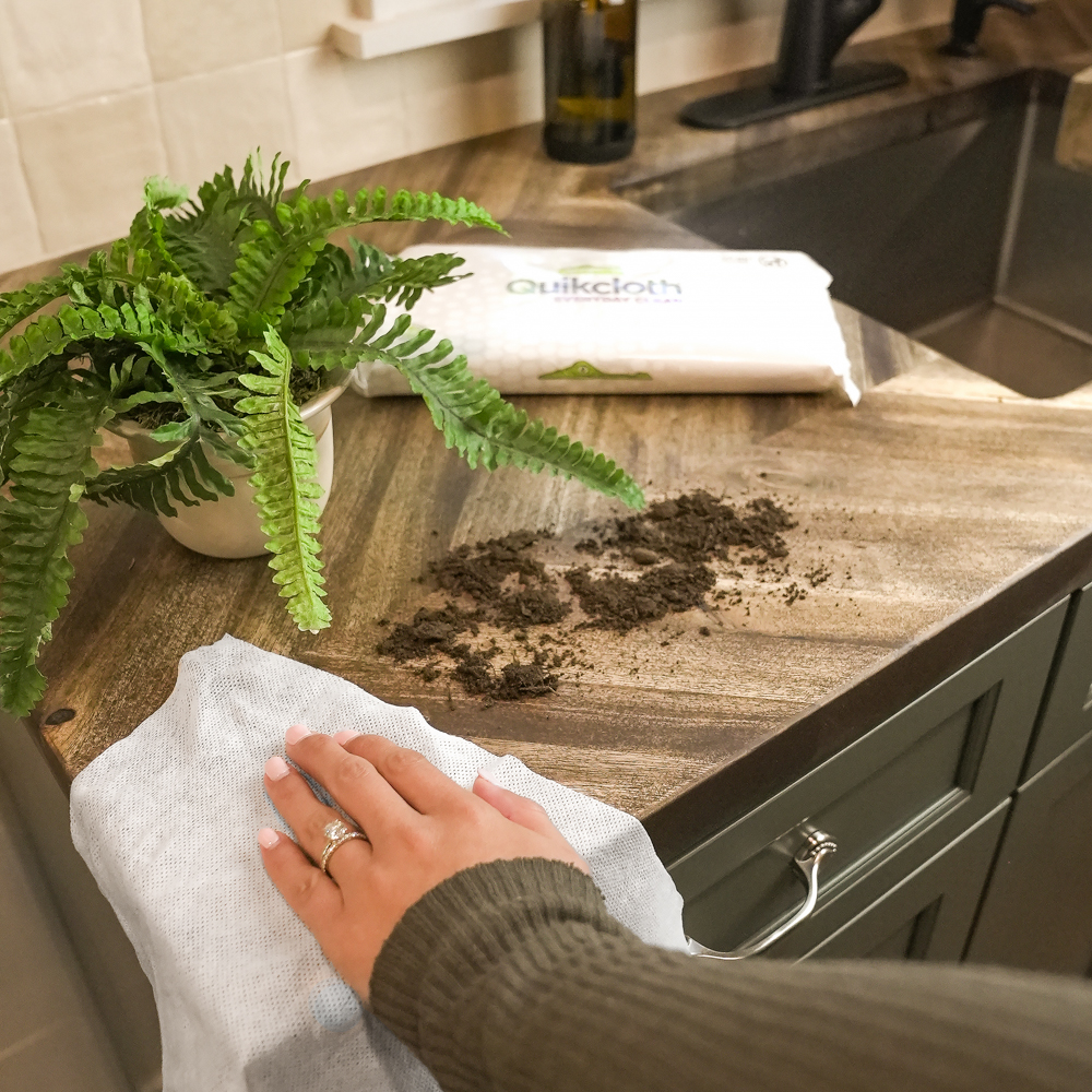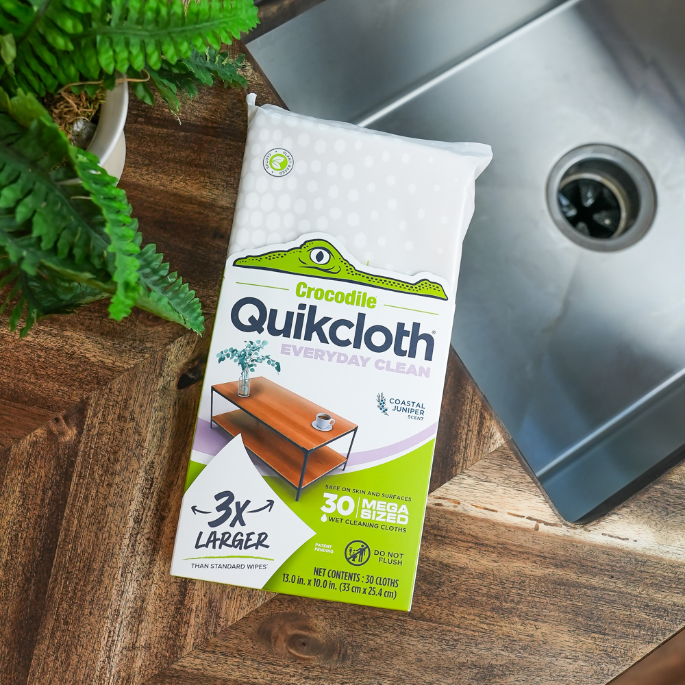 Everyday Clean’s plant-powered formula and thick, ultra-soft cloths tackle messes effortlessly while staying gentle on surfaces and skin. Whether you’re dusting, wiping down a highchair, or tidying up the kitchen for the night, these cleaning cloths set the standard—you’ll never go back to dishcloths, rags, or sponges! And because these plastic-free cleaning cloths are formulated without dyes, bleach or ammonia, you get all the convenience and safety of a disposable product with none of the guilt. Quikcloth® Everyday Clean is the smarter, fresher way to keep your home spotless.